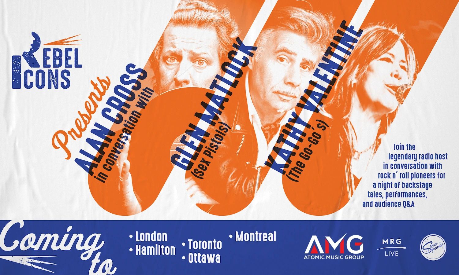 This new live speaker series brings together music legends Alan Cross, Glen Matlock (Sex Pistols), and Kathy Valentine (The Go-Go’s) for an intimate evening of stories, conversation, and music. Join us for a rare chance to hear the icons who shaped rock music in their own words.